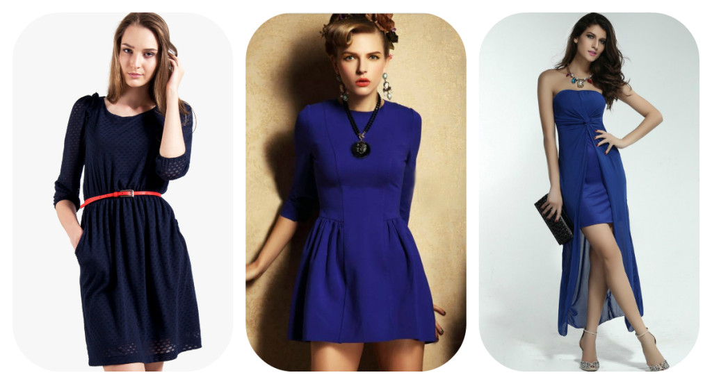 Кстати, платья синего цвета некоторых фасонов не требует украшений вообще, только самые незаметные – платье-футляр, например.